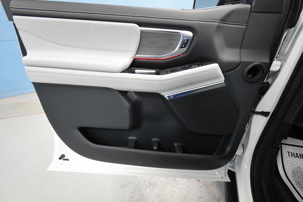 10 Speakers, 2nd Row Power-Folding Captain's Chairs, 3.73 Axle Ratio, 3rd row seats: split-bench, 4-Wheel Disc Brakes, ABS brakes, Air Conditioning, Alloy wheels, AM/FM radio: SiriusXM with 360L, Apple CarPlay/Android Auto, Auto High-beam Headlights, Auto-dimming door mirrors, Auto-dimming Rear-View mirror, Automatic temperature control, Black Headlamp Bezel with Satin Trim Applique, Black Onyx Painted Power Deployable Running Boards, BlueCruise (equipment + 1-Year + 90-Day Plan), Brake assist, Bumpers: body-color, Carbon Black Front Bumper with Lit Grille Bar, Chrome Roof Rails with Black End Caps, Compass, Delay-off headlights, Driver door bin, Driver vanity mirror, Driver's Package, Dual front impact airbags, Dual front side impact airbags, Electronic Stability Control, Emergency communication system: 911 Assist, Engine Sound Enhancer, Exterior Parking Camera Rear, Ford Connectivity Package (1-Year Included), Ford Digital Experience, Four wheel independent suspension, Front and 2nd Rows Floor Liners Without Carper Mats, Front anti-roll bar, Front Bucket Seats, Front Center Armrest, Front Door Scuff Plates with Met Insert and Bright Rear, Front dual zone A/C, Front reading lights, Fully automatic headlights, Garage door transmitter, Genuine wood dashboard insert, Genuine wood door panel insert, Heated and Ventilated Leather Front Captain's Chairs, Heated door mirrors, Heated front seats, Heated rear seats, Heated steering wheel, High Flow Exhaust System, Illuminated entry, Intersection Assist, Leather steering wheel, Low tire pressure warning, Memory seat, Multicontour Active Motion Lthr Frnt Captains Chairs, Navigation System, Occupant sensing airbag, Outside temperature display, Overhead airbag, Overhead console, Panic alarm, Passenger door bin, Passenger vanity mirror, Platinum Ultimate Interior Package, Platinum Ultimate Package, Polished Stainless Steel Beltline Molding, Power door mirrors, Power driver seat, Power moonroof: Vista Roof, Power passenger seat, Power steering, Power windows, Radio data system, Radio: B&O Play Unleashed, Radio: B&O Sound System by Bang and Olufsen, Rain sensing wipers, Rear air conditioning, Rear anti-roll bar, Rear reading lights, Rear Seat Radio Controls, Rear Side Windows Laminated Glass, Rear window defroster, Rear window wiper, Reclining 3rd row seat, Remote keyless entry, Satin Aluminum Expedition Lettering on Side and Hood, Satin Aluminum Platinum Badge on Tailgate, Security system, Signature Grille Lighting, SiriusXM with 360L, Speed control, Speed-sensing steering, Speed-Sensitive Wipers, Split folding rear seat, Spoiler, Steering wheel memory, Steering wheel mounted audio controls, Tachometer, Telescoping steering wheel, Tilt steering wheel, Traction control, Trip computer, Turn signal indicator mirrors, Variably intermittent wipers, Ventilated front seats, Voltmeter, Wheels: 20 x 8.5 Ebony Bright Machined Aluminum, Wheels: 22 x 9.0 Ebony Bright Machined Face Aluminum, Wheels: 24 x 9.5 Tarnished Dark Metallic.
