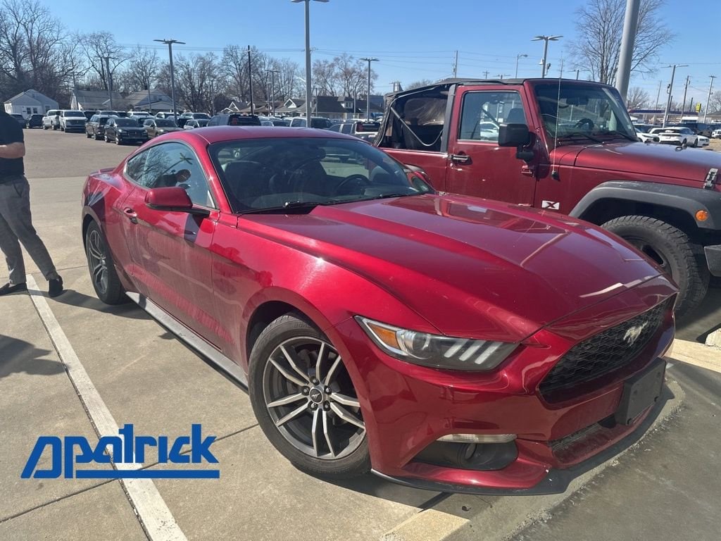 2017 Ford Mustang EcoBoost Premium Recent Arrival! VEHICLE SOLD AS-IS. We want you to shop confidently for your next used car at The BIG Ford Store, D-Patrick Ford. We are located on Highway 41 and Walnut in Evansville, right next to the Lloyd Expressway. This vehicleâs low price is reflective of its age, condition, and mileage and we do not warrant its mechanical or overall condition. This vehicle is provided with a CarFax vehicle history report. This is an AS-IS vehicle and is not available for additional service plans. *Prices listed do not include a $250 documentation fee, applicable tax, title, tags, license, or $195 service and preparation. All pricing, vehicle information, and features (such as accessories and color) are believed to be accurate, but we do not warrant or guarantee such accuracy. The prices shown above may vary from region to region, and incentives are subject to change. Some offers listed may not be available to all customers. All online sale commitments are subject to confirmation of continued availability of vehicle. Once availability is confirmed, online sale agreement becomes binding upon the parties. If any information found on the website is thought to be erroneous, please verify information with a customer service representative. See dealer for full details. Looking to sell your current vehicle? We buy cars for cash. Every test drive at D-Patrick Ford in Evansville earns $10 to a local charity. Schedule your test drive today! 4-Wheel Disc Brakes, 9 Speakers, ABS brakes, Air Conditioning, Alloy wheels, AM/FM radio: SiriusXM, AM/FM Stereo w/Single CD Player, Auto-dimming Rear-View mirror, Automatic temperature control, Brake assist, Bumpers: body-color, CD player, Climate Controlled Heated/Cooled Front Seats, Compass, Delay-off headlights, Driver door bin, Driver vanity mirror, Dual front impact airbags, Dual front side impact airbags, Electronic Stability Control, Emergency communication system: 911 Assist, Equipment Group 200A, Exterior Parking Camera Rear, Four wheel independent suspension, Front anti-roll bar, Front Bucket Seats, Front Center Armrest, Front dual zone A/C, Front fog lights, Front reading lights, Fully automatic headlights, Garage door transmitter, Heated door mirrors, Heated front seats, High-Intensity Discharge Headlights, Illuminated entry, Knee airbag, Leather Bucket Seats, Leather Shift Knob, Low tire pressure warning, Occupant sensing airbag, Outside temperature display, Overhead airbag, Overhead console, Panic alarm, Passenger door bin, Passenger vanity mirror, Power door mirrors, Power driver seat, Power passenger seat, Power steering, Power windows, Radio data system, Rear anti-roll bar, Rear window defroster, Remote keyless entry, Security system, SiriusXM Radio, Speed control, Speed-sensing steering, Speed-Sensitive Wipers, Split folding rear seat, Spoiler, Steering wheel mounted audio controls, SYNC 3 Communications & Entertainment System, Tachometer, Telescoping steering wheel, Tilt steering wheel, Traction control, Trip computer, Turn signal indicator mirrors, Variably intermittent wipers, Ventilated front seats, Voltmeter, Wheels: 18 x 8 Magnetic Painted/Machined. 2D Coupe EcoBoost Premium 6-Speed Automatic with Select-Shift EcoBoost 2.3L I4 GTDi DOHC Turbocharged VCT RWD Ruby Red Metallic CALL TODAY (812) 625-4823 OR SHOP ONLINE AT WWW.DPATRICKFORD.COM.
