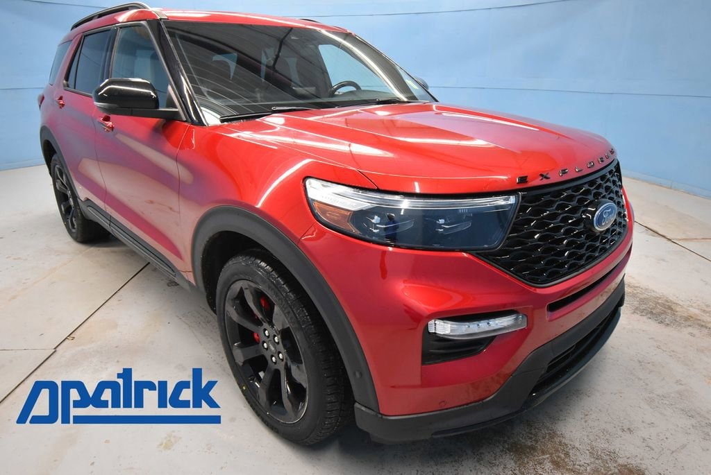 2021 Ford Explorer ST We want you to shop confidently for your next used car at D-Patrick Boonville Ford and We make it EASY! Buy this used vehicle 100% online or in-store, EASY. Saving time at the dealership, EASY! Financing, EASY! Finding the car you love at the price you want, EASY! We also offer extended service plans, vehicle protection plans, and offer a CarFax vehicle history report. *Prices listed do not include a $250 documentation fee, applicable tax, title, tags, license, or $195 service and preparation. All pricing, vehicle information, and features (such as accessories and color) are believed to be accurate, but we do not warrant or guarantee such accuracy. The prices shown above may vary from region to region, and incentives are subject to change. Some offers listed may not be available to all customers. All online sale commitments are subject to confirmation of continued availability of vehicle. Once availability is confirmed, online sale agreement becomes binding upon the parties. If any information found on the website is thought to be erroneous, please verify information with a customer service representative. See dealer for full details. Looking to sell your current vehicle? We buy cars for cash. 4WD, 10.1 LCD Capacitive Portrait Touchscreen, 110V/150W AC Power Outlet, 2 Additional Speakers, 20 Machined Aluminum w/Painted Pockets Wheels, 3.58 Non-Limited-Slip Rear Axle Ratio, 360-Degree Camera w/Split View, 3rd row seats: bench, 4-Wheel Disc Brakes, 6 Speakers, ABS brakes, Active Park Assist 2.0, Air Conditioning, Alloy wheels, AM/FM radio: SiriusXM, AM/FM Stereo, Auto High-beam Headlights, Auto-Dimming Rearview Mirror (Interior), Automatic temperature control, Black Roof-Rack Side Rails, Brake assist, Bumpers: body-color, Compass, Delay-off headlights, Driver door bin, Driver vanity mirror, Dual front impact airbags, Dual front side impact airbags, Electronic Stability Control, Emergency communication system: SYNC 3 911 Assist, Equipment Group 401A, Evasive Steering Assist, Exterior Parking Camera Rear, Ford Co-Pilot360 Assist+, FordPass Connect, Forward Sensing System, Four wheel independent suspension, Front anti-roll bar, Front Bucket Seats, Front Center Armrest, Front dual zone A/C, Front fog lights, Front Rain-Sensing Wipers, Front reading lights, Fully automatic headlights, Hands-Free Foot-Activated Liftgate, Heated door mirrors, Heated front seats, Heated steering wheel, Illuminated entry, Intelligent Adaptive Cruise Control, Knee airbag, Leather Htd/Ventilated Sport Captain's Chairs, Leather steering wheel, Low tire pressure warning, Memory Driver's Seat, Occupant sensing airbag, Outside temperature display, Overhead airbag, Overhead console, Panic alarm, Passenger door bin, Passenger vanity mirror, Performance Front & Rear Brakes, Power door mirrors, Power driver seat, Power Liftgate, Power passenger seat, Power steering, Power Tilt/Telescoping Steering Column, Power windows, Premium Technology Package, Radio: B&O Sound System by Bang & Olufsen, Rear air conditioning, Rear anti-roll bar, Rear reading lights, Rear window defroster, Rear window wiper, Remote keyless entry, Reverse Brake Assist, Second Row Heated Seats, Security system, SelectShift Capability w/Paddle Shifters, Sideview Mirrors w/Gloss Black Caps, Speed control, Speed Sign Recognition, Speed-sensing steering, Speed-Sensitive Wipers, Split folding rear seat, Spoiler, Sport steering wheel, ST High Package, ST Street Pack, Steering wheel mounted audio controls, SYNC 3 Communications & Entertainment System, SYNC 3/Apple CarPlay/Android Auto, Tachometer, Telescoping steering wheel, Third Row PowerFold (Folds Flat), Tilt steering wheel, Traction control, Trip computer, Twin Panel Moonroof, Universal Garage Door Opener (UGDO), Variably intermittent wipers, Voice-Activated Touchscreen Navigation System, Wheels: 21 Aluminum, Wireless Charging Pad, 4WD. 4D Sport Utility ST 10-Speed Automatic 3.0L EcoBoost V6 4WD Red Metallic CALL US TODAY BE
