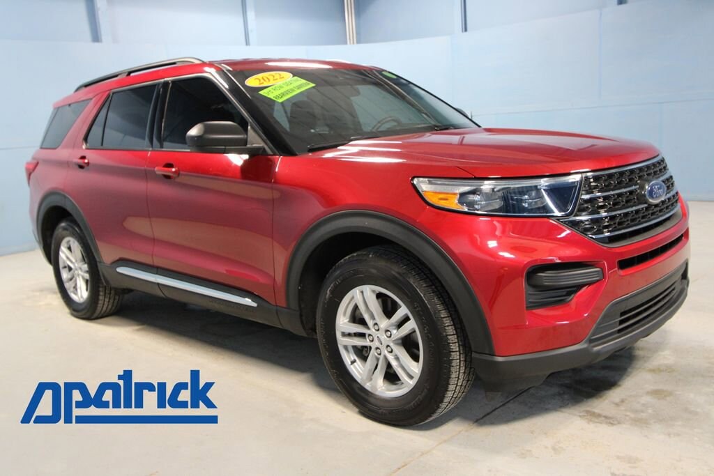 2022 Ford Explorer XLT Recent Arrival! We want you to shop confidently for your next used car at The BIG Ford Store, D-Patrick Ford. We are located on Highway 41 and Walnut in Evansville, right next to the Lloyd Expressway. Buy this used vehicle 100% online or in-store. This pre-owned vehicle was put through an extensive inspection before hitting our lot. Because of this, we are able to offer a 3-month/3,000-mile comprehensive limited warranty. You also get our Love It or Return It 5-day, 300-mile Exchange Policy. See our website for more details on both. We also offer extended service plans, vehicle protection plans, and offer a CarFax vehicle history report. *Prices listed do not include a $250 documentation fee, applicable tax, title, tags, license, or $195 service and preparation. All pricing, vehicle information, and features (such as accessories and color) are believed to be accurate, but we do not warrant or guarantee such accuracy. The prices shown above may vary from region to region, and incentives are subject to change. Some offers listed may not be available to all customers. All online sale commitments are subject to confirmation of continued availability of vehicle. Once availability is confirmed, online sale agreement becomes binding upon the parties. If any information found on the website is thought to be erroneous, please verify information with a customer service representative. See dealer for full details. Looking to sell your current vehicle? We buy cars for cash. Every test drive at D-Patrick Ford in Evansville earns $10 to a local charity. Schedule your test drive today! 4WD, 1st Row Heated Seats, 3.58 Non-Limited-Slip Rear Axle Ratio, 3rd row seats: bench, 4-Wheel Disc Brakes, 4G LTE Wi-Fi Hotspot Removal Credit, 6 Speakers, ABS brakes, Air Conditioning, Alloy wheels, AM/FM radio: SiriusXM, AM/FM Stereo, Auto High-beam Headlights, Auto Start-Stop Removal, Automatic temperature control, Brake assist, Bumpers: body-color, Compass, Delay-off headlights, Driver door bin, Driver vanity mirror, Dual front impact airbags, Dual front side impact airbags, Electronic Stability Control, Emergency communication system: SYNC 3 911 Assist, Equipment Group 200A, Exterior Parking Camera Rear, FordPass Connect, Four wheel independent suspension, Front anti-roll bar, Front Bucket Seats, Front Center Armrest, Front dual zone A/C, Front reading lights, Fully automatic headlights, Heated door mirrors, Heated front seats, Illuminated entry, Knee airbag, Leather steering wheel, Low tire pressure warning, Occupant sensing airbag, Outside temperature display, Overhead airbag, Overhead console, Panic alarm, Passenger door bin, Passenger vanity mirror, Power door mirrors, Power driver seat, Power Liftgate, Power passenger seat, Power steering, Power windows, Rear air conditioning, Rear anti-roll bar, Rear reading lights, Rear window defroster, Rear window wiper, Remote keyless entry, Roof rack: rails only, Security system, Speed control, Speed-sensing steering, Speed-Sensitive Wipers, Split folding rear seat, Spoiler, Steering wheel mounted audio controls, SYNC 3 Communications & Entertainment System, SYNC 3/Apple CarPlay/Android Auto, Tachometer, Telescoping steering wheel, Tilt steering wheel, Traction control, Trip computer, Unique Cloth Captain's Chairs, Variably intermittent wipers, Wheels: 18 5-Spoke Silver-Painted Aluminum, 4WD. Clean CARFAX. 4D Sport Utility XLT 10-Speed Automatic 2.3L EcoBoost I-4 4WD Rapid Red Metallic Tinted Clearcoat CALL TODAY (812) 625-4823 OR SHOP ONLINE AT WWW.DPATRICKFORD.COM.