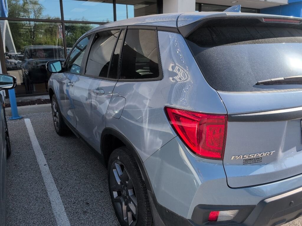 2023 Honda Passport EX-L Recent Arrival! *Prices listed do not include applicable tax, title, tags, license. Prices do include a $250 Documentation Fee and $175 Service & Preparation. All pricing, vehicle information, and features (such as accessories and color) are believed to be accurate, but we do not warrant or guarantee such accuracy. The prices shown above may vary from region to region, and incentives are subject to change. Some offers listed may not be available to all customers. All online sale commitments are subject to confirmation of continued availability of vehicle. Once availability is confirmed, online sale agreement becomes binding upon the parties. If any information found on the website is thought to be erroneous, please verify information with a customer service representative. See dealer for full details. 4-Wheel Disc Brakes, 4.334 Axle Ratio, 7 Speakers, A/V remote: CabinControl, ABS brakes, Air Conditioning, Alloy wheels, AM/FM radio: SiriusXM, Apple CarPlay/Android Auto, Auto High-beam Headlights, Auto-dimming Rear-View mirror, Automatic temperature control, Blind Spot Information (BSI) System warning, Brake assist, Bumpers: body-color, Delay-off headlights, Driver door bin, Driver vanity mirror, Driver's Seat Mounted Armrest, Dual front impact airbags, Dual front side impact airbags, Electronic Stability Control, Emergency communication system: HondaLink Assist, Exterior Parking Camera Rear, Four wheel independent suspension, Front anti-roll bar, Front Bucket Seats, Front Center Armrest, Front dual zone A/C, Front reading lights, Fully automatic headlights, Garage door transmitter: HomeLink, Heated door mirrors, Heated Front Bucket Seats, Heated front seats, Illuminated entry, Lane departure: Lane Keeping Assist System (LKAS) active, Leather-Trimmed Seats, Low tire pressure warning, Occupant sensing airbag, Outside temperature display, Overhead airbag, Overhead console, Panic alarm, Passenger door bin, Passenger seat mounted armrest, Passenger vanity mirror, Power door mirrors, Power driver seat, Power Liftgate, Power moonroof, Power passenger seat, Power steering, Power windows, Radio data system, Radio: 215-Watt Audio System w/7 Speakers, Rear air conditioning, Rear anti-roll bar, Rear reading lights, Rear seat center armrest, Rear window defroster, Rear window wiper, Remote keyless entry, Security system, Speed control, Speed-sensing steering, Split folding rear seat, Spoiler, Steering wheel mounted audio controls, Tachometer, Telescoping steering wheel, Tilt steering wheel, Traction control, Trip computer, Turn signal indicator mirrors, Variably intermittent wipers, Wheels: 20 Pewter Gray Alloy. CARFAX One-Owner. 4D Sport Utility EX-L 9-Speed Automatic 3.5L V6 24V SOHC i-VTEC AWD Gray (812) 477-6201 and shop online at www.dpathonda.com.