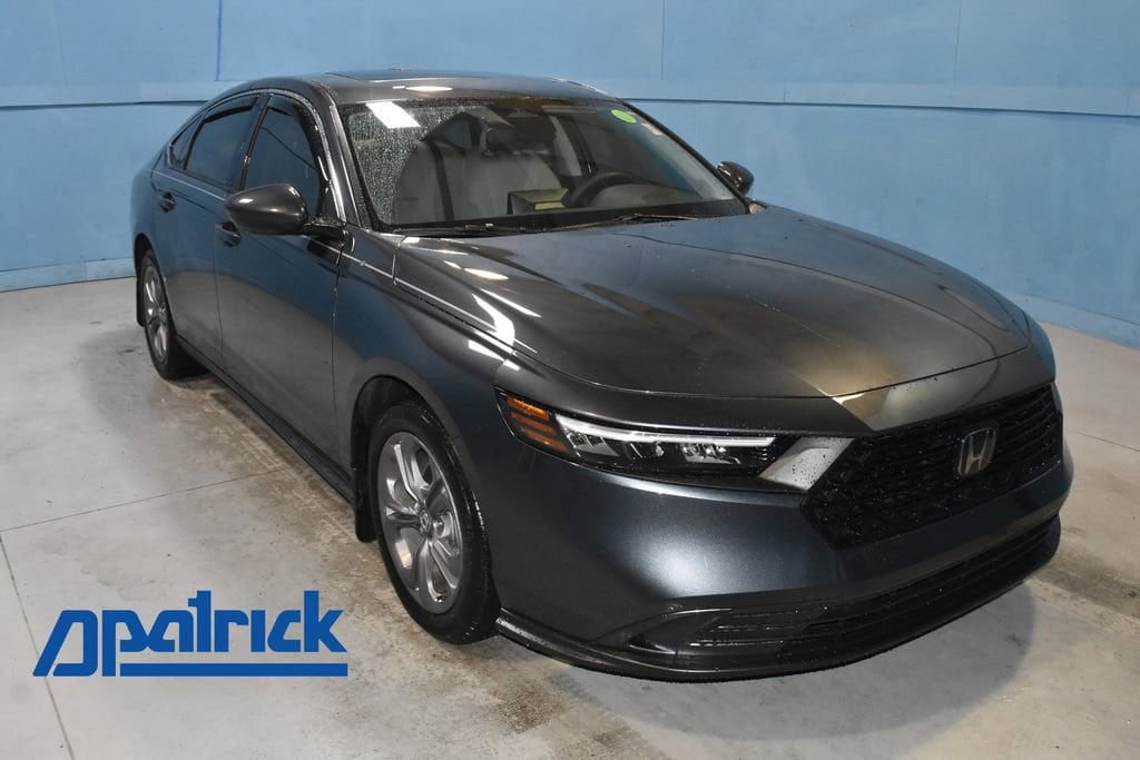 2024 Honda Accord EX Recent Arrival! We want you to shop confidently for your next used car at D-Patrick Nissan. Buy this used vehicle 100% online or in-store. This pre-owned vehicle was put through an extensive inspection before hitting our lot. Because of this, we are able to offer a 3-month/3,000-mile comprehensive limited warranty. You also get our Love It or Return It 5-day, 300-mile Exchange Policy. See our website for more details on both. We also offer extended warranties, additional protection plans, and offer a CarFax vehicle history report. We have a large selection of all makes and models in-stock today at the MEGASTORE. Looking to sell your current vehicle? We want to buy your car! *Prices listed do not include a $250 documentation fee, applicable tax, title, tags, license, or $195 service and preparation. All pricing, vehicle information, and features (such as accessories and color) are believed to be accurate, but we do not warrant or guarantee such accuracy. The prices shown above may vary from region to region, and incentives are subject to change. Some offers listed may not be available to all customers. All online sale commitments are subject to confirmation of continued availability of vehicle. Once availability is confirmed, online sale agreement becomes binding upon the parties. If any information found on the website is thought to be erroneous, please verify information with a customer service representative. See dealer for full details. Looking to sell your current vehicle? We buy cars for cash. Gray Cloth, 4-Wheel Disc Brakes, 8 Speakers, ABS brakes, Adaptive Cruise Control: Adaptive Cruise Control (ACC) with Low-Speed Follow, Air Conditioning, Alloy wheels, AM/FM radio, Apple CarPlay/Android Auto, Auto High-beam Headlights, Auto-dimming Rear-View mirror, Automatic temperature control, Blind Spot Information (BSI) System warning, Brake assist, Bumpers: body-color, Compass, Delay-off headlights, Driver door bin, Driver vanity mirror, Dual front impact airbags, Dual front side impact airbags, Electronic Stability Control, Emergency communication system: HondaLink Assist, Exterior Parking Camera Rear, Fabric Seat Trim, Four wheel independent suspension, Front anti-roll bar, Front Bucket Seats, Front Center Armrest, Front dual zone A/C, Front reading lights, Fully automatic headlights, Heated Front Bucket Seats, Heated front seats, Illuminated entry, Knee airbag, Lane departure: Lane Keeping Assist System (LKAS) active, Low tire pressure warning, Occupant sensing airbag, Outside temperature display, Overhead airbag, Overhead console, Panic alarm, Passenger door bin, Passenger vanity mirror, Power door mirrors, Power driver seat, Power moonroof, Power steering, Power windows, Radio data system, Radio: 180-Watt AM/FM Audio System, Rear anti-roll bar, Rear reading lights, Rear seat center armrest, Rear side impact airbag, Rear window defroster, Remote keyless entry, Security system, Speed control, Speed-sensing steering, Speed-Sensitive Wipers, Split folding rear seat, Steering wheel mounted audio controls, Tachometer, Telescoping steering wheel, Tilt steering wheel, Traction control, Trip computer, Variably intermittent wipers, Wheels: 17 x 7.5 Pewter Gray, Gray Cloth. Clean CARFAX. 4D Sedan EX CVT 1.5T I4 DOHC 16V Turbocharged VTEC FWD Meteorite Gray Metallic CALL TODAY 812-473-6500 and shop online at www.dpatricknissan.com.