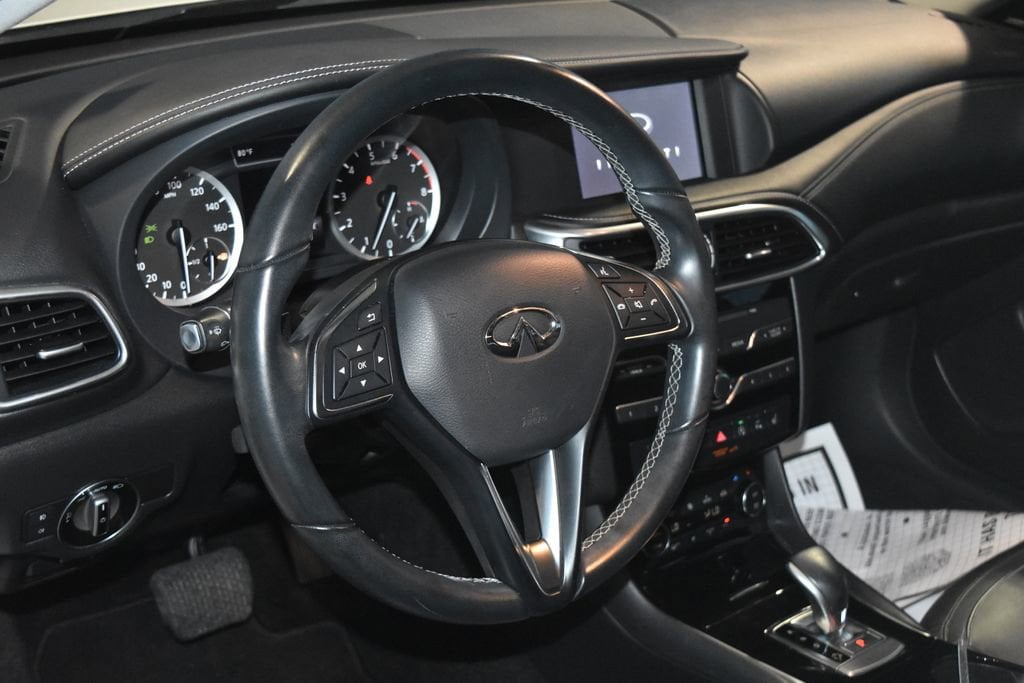 - [L11] STANDARD CARPETED FLOOR MATS,[S55] LITERATURE KIT,GRAPHITE LEATHER SEAT TRIM,[Z66] ACTIVATION DISCLAIMER,[B93] REAR BUMPER PROTECTOR,[U03] NAVIGATION PACKAGE -inc: SiriusXM Traffic w/4-year complimentary trial access to real-time traffic information and SD card slot Around View Monitor Moving Object Detection (MOD) Color Center Meter Display INFINITI InTouch Navigation System INFINITI InTouch services (remote services unavailable) w/12 months of safety security and convenience services and 7 VGA LCD touch screen Front & Rear Parking Sensors,MAJESTIC WHITE,[B92] SPLASH GUARDS,Turbocharged,All Wheel Drive,Power Steering,ABS,4-Wheel Disc Brakes,Brake Assist,Aluminum Wheels,Tires - Front Performance,Tires - Rear Performance,Sun/Moonroof,Generic Sun/Moonroof,Panoramic Roof,Heated Mirrors,Power Mirror(s),Integrated Turn Signal Mirrors,Power Folding Mirrors,Rear Defrost,Intermittent Wipers,Variable Speed Intermittent Wipers,Rain Sensing Wipers,Rear Spoiler,Fog Lamps,Daytime Running Lights,Automatic Headlights,LED Headlights,AM/FM Stereo,CD Player,Premium Sound System,Satellite Radio,MP3 Capability,Bluetooth ® Connection,Auxiliary Audio Input,HD Radio,Smart Device Integration,Requires Subscription,MP3 Capability,Steering Wheel Audio Controls,Auxiliary Audio Input,Bluetooth ® Connection,Power Driver Seat,Power Passenger Seat,Bucket Seats,Heated Front Seat(s),Driver Adjustable Lumbar,Passenger Adjustable Lumbar,Seat Memory,Pass-Through Rear Seat,Rear Bench Seat,Adjustable Steering Wheel,Trip Computer,Power Windows,Leather Steering Wheel,Keyless Entry,Power Door Locks,Keyless Start,Keyless Entry,Power Door Locks,Universal Garage Door Opener,Cruise Control,Climate Control,Multi-Zone A/C,A/C,Leather Seats,Auto-Dimming Rearview Mirror,Driver Vanity Mirror,Passenger Vanity Mirror,Driver Illuminated Vanity Mirror,Passenger Illuminated Visor Mirror,Floor Mats,Cargo Shade,Keyless Start,Smart Device Integration,Mirror Memory,Seat Memory,Power Windows,Power Door Locks,Trip Computer,Pass-Through Rear Seat,Security System,Immobilizer,Traction Control,Stability Control,Traction Control,Front Side Air Bag,Front Collision Mitigation,Tire Pressure Monitor,Driver Air Bag,Passenger Air Bag,Front Head Air Bag,Rear Head Air Bag,Passenger Air Bag Sensor,Knee Air Bag,Child Safety Locks,Back-Up Camera