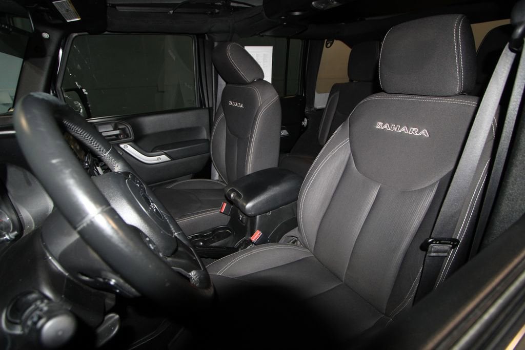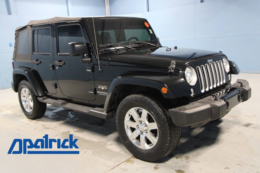 2017 Jeep Wrangler Unlimited Sahara VEHICLE SOLD AS-IS. We want you to shop confidently for your next used car at The BIG Ford Store, D-Patrick Ford. We are located on Highway 41 and Walnut in Evansville, right next to the Lloyd Expressway. This vehicleâs low price is reflective of its age, condition, and mileage and we do not warrant its mechanical or overall condition. This vehicle is provided with a CarFax vehicle history report. This is an AS-IS vehicle and is not available for additional service plans. *Prices listed do not include a $250 documentation fee, applicable tax, title, tags, license, or $195 service and preparation. All pricing, vehicle information, and features (such as accessories and color) are believed to be accurate, but we do not warrant or guarantee such accuracy. The prices shown above may vary from region to region, and incentives are subject to change. Some offers listed may not be available to all customers. All online sale commitments are subject to confirmation of continued availability of vehicle. Once availability is confirmed, online sale agreement becomes binding upon the parties. If any information found on the website is thought to be erroneous, please verify information with a customer service representative. See dealer for full details. Looking to sell your current vehicle? We buy cars for cash. Every test drive at D-Patrick Ford in Evansville earns $10 to a local charity. Schedule your test drive today! 18 x 7.5 7-Spoke Polished Aluminum Wheels, 18 x 7.5 Polished Satin Carbon Wheels, 3.21 Rear Axle Ratio, 4-Wheel Disc Brakes, 40GB Hard Drive w/28GB Available, 5-Year SiriusXM Travel Link Service, 6.5 Touchscreen Display, 8 Speakers, ABS brakes, Air Conditioning, Alloy wheels, Alpine 9-Speaker w/All Weather Subwoofer, AM/FM radio: SiriusXM, Audio Jack Input for Mobile Devices, Auto-dimming Rear-View mirror, Body Color Appliques Front Bumper, Body Color Appliques Rear Bumper, Body Color/Accent Color Grille, Brake assist, CD player, Cloth Seats w/Adjustable Head Restraints, Compass, Connectivity Group, Driver door bin, Driver vanity mirror, Dual front impact airbags, Electronic Stability Control, Front anti-roll bar, Front Bucket Seats, Front Center Armrest w/Storage, Front fog lights, Front reading lights, Fully automatic headlights, GPS Navigation, Heated door mirrors, Heavy Duty Suspension w/Gas Shocks (DISC), Illuminated entry, Integrated roll-over protection, Leather steering wheel, Low tire pressure warning, Occupant sensing airbag, Outside temperature display, Panic alarm, Passenger door bin, Passenger vanity mirror, Power door mirrors, Power steering, Power windows, Quick Order Package 23G, Radio data system, Radio: 130, Radio: 430 Nav, Rear anti-roll bar, Remote keyless entry, Remote USB Port, Security system, SiriusXM Travel Link, Speed control, Split folding rear seat, Steering wheel mounted audio controls, Tachometer, Tilt steering wheel, Tire Pressure Monitoring Display, Traction control, Trip computer, Uconnect Voice Command w/Bluetooth, Variably intermittent wipers, Vehicle Information Center. Clean CARFAX. 4D Sport Utility Unlimited Sahara 6-Speed Manual 3.6L V6 24V VVT 4WD Black Clearcoat CALL TODAY (812) 625-4823 OR SHOP ONLINE AT WWW.DPATRICKFORD.COM.