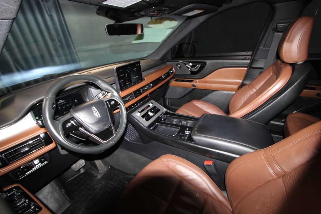 2023 Lincoln Aviator Reserve We want you to shop confidently for your next used car at The BIG Ford Store, D-Patrick Ford. We are located on Highway 41 and Walnut in Evansville, right next to the Lloyd Expressway. Buy this used vehicle 100% online or in-store. This pre-owned vehicle was put through an extensive inspection before hitting our lot. Because of this, we are able to offer a 3-month/3,000-mile comprehensive limited warranty. You also get our Love It or Return It 5-day, 300-mile Exchange Policy. See our website for more details on both. We also offer extended service plans, vehicle protection plans, and offer a CarFax vehicle history report. *Prices listed do not include a $250 documentation fee, applicable tax, title, tags, license, or $195 service and preparation. All pricing, vehicle information, and features (such as accessories and color) are believed to be accurate, but we do not warrant or guarantee such accuracy. The prices shown above may vary from region to region, and incentives are subject to change. Some offers listed may not be available to all customers. All online sale commitments are subject to confirmation of continued availability of vehicle. Once availability is confirmed, online sale agreement becomes binding upon the parties. If any information found on the website is thought to be erroneous, please verify information with a customer service representative. See dealer for full details. Looking to sell your current vehicle? We buy cars for cash. Every test drive at D-Patrick Ford in Evansville earns $10 to a local charity. Schedule your test drive today! 14 Speakers, 3.58 Axle Ratio, 3rd row seats: split-bench, 4-Pin & 7-Pin Connectors, 4-Wheel Disc Brakes, ABS brakes, Active Park Assist 2.0, Adaptive suspension, Air Conditioning, Air Glide Suspension w/Dynamic Lower Entry, All-Weather 1st & 2nd Row Floor Liners (16A), Alloy wheels, AM/FM radio: SiriusXM, Audio memory, Auto Air Refresh, Auto Heated/Ventilated Driver & Passenger Seats, Auto High-beam Headlights, Auto-dimming door mirrors, Auto-dimming Rear-View mirror, Automatic temperature control, Black Exterior Elements, Blind Spot Information System, Body-Color Exterior Elements, Brake assist, Bumpers: body-color, Class IV Hitch & Wiring, Class IV Trailer Tow Package, Compass, Delay-off headlights, Driver door bin, Driver vanity mirror, Dual front impact airbags, Dual front side impact airbags, Dynamic Handling Package, Electronic Stability Control, Elements Package Plus, Emergency communication system, Enhanced Security System Lite, Equipment Group 201A, Evasive Steering Assist, Four wheel independent suspension, Front anti-roll bar, Front Bucket Seats, Front Center Armrest, Front dual zone A/C, Front reading lights, Fully automatic headlights, Garage door transmitter, Hands-Free Liftgate Delete, Head-Up Display, Heated door mirrors, Heated front seats, Heated Steering Wheel, Heated VisioBlade Wipers, Heated/Ventilated 2nd Row Outboard Seats, HVAC memory, Illuminated entry, Intelligent Adaptive Cruise Control, Jet Package, Knee airbag, Leather steering wheel, Lincoln Co-Pilot360 1.5 Plus, Linear Brushed Aluminum Applique, Low tire pressure warning, Memory seat, Navigation System, Occupant sensing airbag, Outside temperature display, Overhead airbag, Overhead console, Panic alarm, Passenger door bin, Passenger vanity mirror, Phone As A Key, Power door mirrors, Power driver seat, Power Liftgate, Power moonroof: Panoramic Vista Roof, Power passenger seat, Power steering, Power windows, Premium Lthr Heated/Ventilated Fnt Captain's Chairs, Radio data system, Radio: Revel AM/FM Audio System w/14 Speakers, Rain sensing wipers, Rear air conditioning, Rear anti-roll bar, Rear audio controls, Rear dual zone A/C, Rear reading lights, Rear window defroster, Rear window wiper, Remote keyless entry, Reverse Brake Assist, Security system, SiriusXM Radio, Smart Trailer Tow, Speed control, Speed-Sensitive Wipers, Split folding rear seat, Spoiler, Steering whee