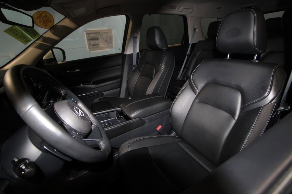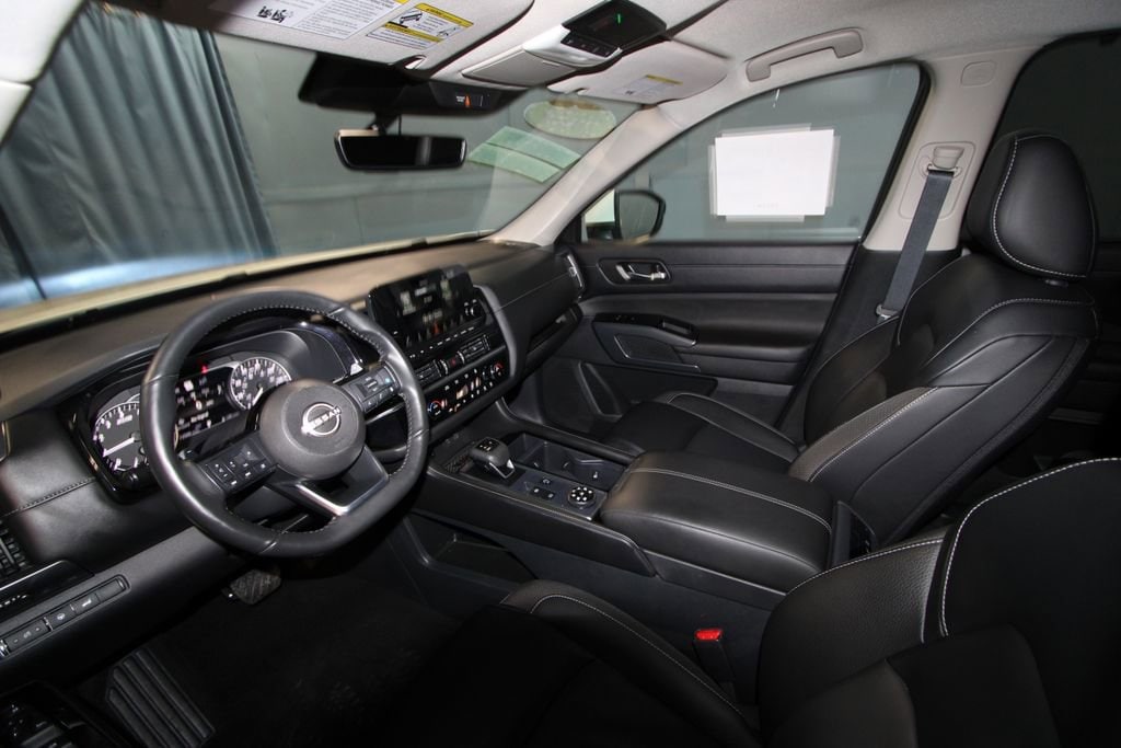2024 Nissan Pathfinder SL We want you to shop confidently for your next used car at The BIG Ford Store, D-Patrick Ford. We are located on Highway 41 and Walnut in Evansville, right next to the Lloyd Expressway. Buy this used vehicle 100% online or in-store. This pre-owned vehicle was put through an extensive inspection before hitting our lot. Because of this, we are able to offer a 3-month/3,000-mile comprehensive limited warranty. You also get our Love It or Return It 5-day, 300-mile Exchange Policy. See our website for more details on both. We also offer extended service plans, vehicle protection plans, and offer a CarFax vehicle history report. *Prices listed do not include a $250 documentation fee, applicable tax, title, tags, license, or $195 service and preparation. All pricing, vehicle information, and features (such as accessories and color) are believed to be accurate, but we do not warrant or guarantee such accuracy. The prices shown above may vary from region to region, and incentives are subject to change. Some offers listed may not be available to all customers. All online sale commitments are subject to confirmation of continued availability of vehicle. Once availability is confirmed, online sale agreement becomes binding upon the parties. If any information found on the website is thought to be erroneous, please verify information with a customer service representative. See dealer for full details. Looking to sell your current vehicle? We buy cars for cash. Every test drive at D-Patrick Ford in Evansville earns $10 to a local charity. Schedule your test drive today! 4WD, 3rd row seats: bench, 4-Wheel Disc Brakes, 6 Speakers, ABS brakes, Air Conditioning, Alloy wheels, AM/FM radio: SiriusXM, Auto High-beam Headlights, Auto-dimming Rear-View mirror, Automatic temperature control, Axle Ratio: 4.334, Bench Seat Carpeted Floor Mats (Set of 4), Black Splash Guards (Set of 4), Brake assist, Bumpers: body-color, Cross Bars, Delay-off headlights, Driver door bin, Driver vanity mirror, Dual front impact airbags, Dual front side impact airbags, Electronic Stability Control, Emergency communication system, Exterior Parking Camera Rear, Four wheel independent suspension, Front anti-roll bar, Front Bucket Seats, Front Center Armrest, Front dual zone A/C, Front reading lights, Fully automatic headlights, Garage door transmitter: HomeLink, Heated door mirrors, Heated Front Bucket Seats, Heated front seats, Heated steering wheel, Illuminated entry, Knee airbag, Leather steering wheel, Leather-Appointed Seating Surfaces, Low tire pressure warning, Navigation system: NissanConnect with Navigation and Services, NissanConnect featuring Apple CarPlay and Android Auto, NissanConnect w/Navigation & Services, Occupant sensing airbag, Outside temperature display, Overhead airbag, Overhead console, Panic alarm, Passenger door bin, Passenger vanity mirror, Power door mirrors, Power driver seat, Power Liftgate, Power passenger seat, Power steering, Power windows, Radio data system, Radio: AM/FM Audio System, Rear air conditioning, Rear anti-roll bar, Rear reading lights, Rear seat center armrest, Rear side impact airbag, Rear window defroster, Rear window wiper, Reclining 3rd row seat, Remote keyless entry, Security system, Speed control, Speed-sensing steering, Split folding rear seat, Spoiler, Steering wheel mounted audio controls, Tachometer, Telescoping steering wheel, Tilt steering wheel, Traction control, Trip computer, Turn signal indicator mirrors, Variably intermittent wipers, Wheels: 18 x 8J Machined Alloy, 4WD. CARFAX One-Owner. Clean CARFAX. 4D Sport Utility SL 9-Speed Automatic 3.5L V6 DOHC 4WD Pearl White Tricoat CALL TODAY (812) 625-4823 OR SHOP ONLINE AT WWW.DPATRICKFORD.COM.