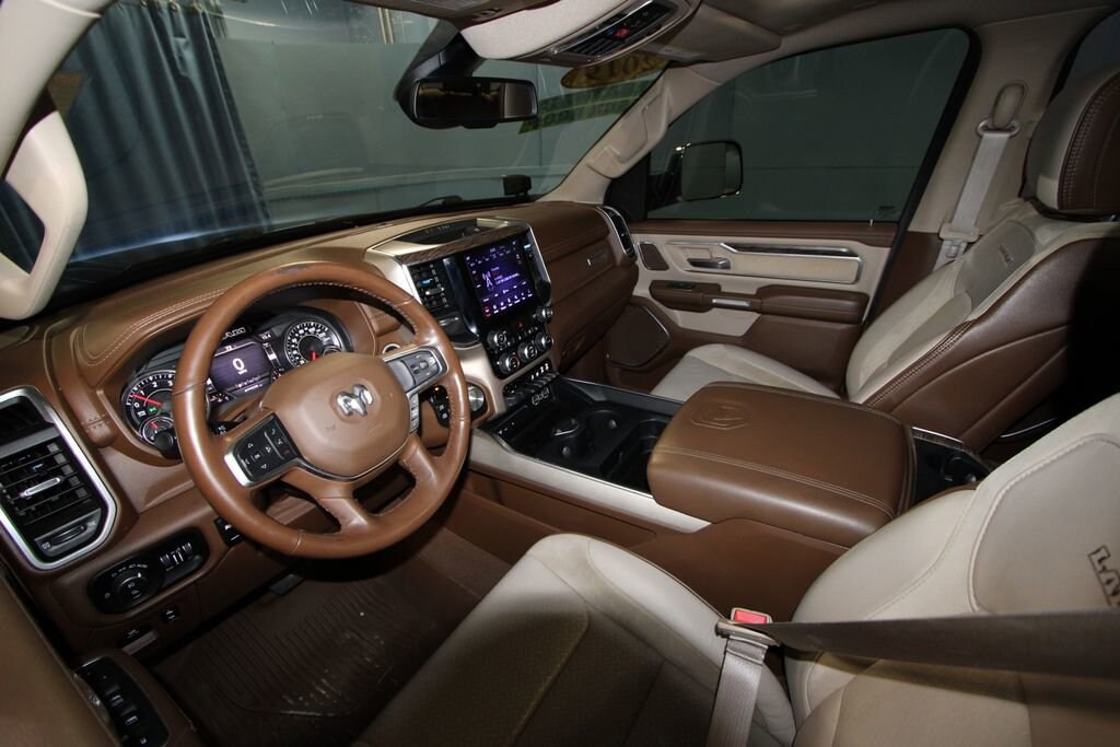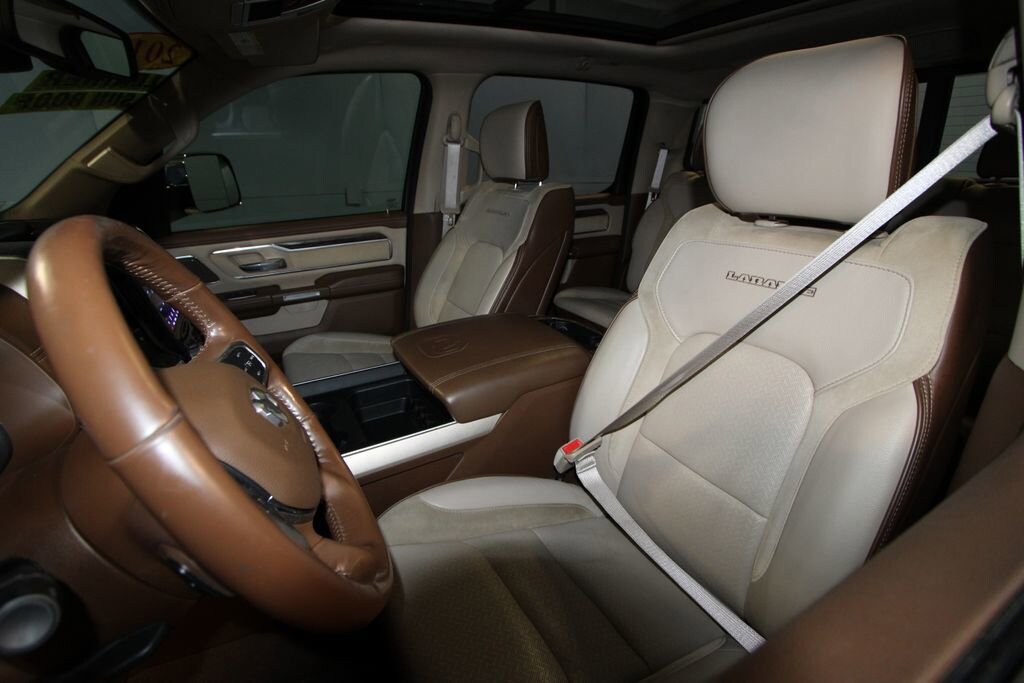 - 3.92 REAR AXLE RATIO,WHEEL TO WHEEL SIDE STEPS,WHEELS: 20 X 9 PREMIUM PAINT/POLISHED -inc: Tires: 275/55R20 OWL All Season,BED UTILITY GROUP -inc: Spray In Bedliner 4 Adjustable Cargo Tie-Down Hooks Pick-Up Box Lighting,REAR UNDERSEAT COMPARTMENT STORAGE,ENGINE: 5.7L V8 HEMI MDS VVT -inc: Active Noise Control System Heavy Duty Engine Cooling GVWR: 7 100 lbs Dual Rear Exhaust w/Bright Tips Hemi Badge 220 Amp Alternator,LT FROST BEIGE/MOUNTAIN LEATHER TRIMMED BUCKET SEATS -inc: Bucket Seats Rear 60/40 Folding Split Recline Seat Center Console Parts Module Full Length Upgraded Floor Console,REAR WHEELHOUSE LINERS,TRAILER TOW GROUP -inc: Trailer Brake Control Power Chrome Trailer Tow Mirrors Trailer Tow Mirrors,LARAMIE LEVEL 2 EQUIPMENT GROUP -inc: Blind Spot & Cross Path Detection Rain Sensitive Windshield Wipers ParkSense Front/Rear Park Assist w/Stop Wireless Charging Pad Radio: Uconnect 4C Nav w/8.4 Display SiriusXM Traffic Plus Disassociated Touchscreen Display HD Radio For Details Visit DriveUconnect.com 1-Yr SiriusXM Guardian Trial 5-Year SiriusXM Travel Link Service GPS Navigation 5-Year SiriusXM Traffic Service SiriusXM Travel Link No Satellite Coverage w/HI/AK/PR/VI/GU Rear 60/40 Folding Split Recline Seat Remote Tailgate Release harman/kardon 19 Speaker Premium Sound Rear Underseat Compartment Storage Auto High Beam Headlamp Control Heated Second Row Seats Tailgate Ajar Warning Lamp Foam Bottle Insert (Door Trim Panel) Single Disc Remote CD Player,RADIO: UCONNECT 4C NAV W/8.4 DISPLAY -inc: SiriusXM Traffic Plus Disassociated Touchscreen Display HD Radio For Details Visit DriveUconnect.com 1-Yr SiriusXM Guardian Trial 5-Year SiriusXM Travel Link Service GPS Navigation 5-Year SiriusXM Traffic Service SiriusXM Travel Link No Satellite Coverage w/HI/AK/PR/VI/GU,GVWR: 7 100 LBS,LOWER TWO TONE PAINT,BILLET SILVER METALLIC CLEARCOAT,DUAL-PANE PANORAMIC SUNROOF -inc: LED Dome/Reading Lamp Dome Dual LED Reading Lamp,FRONT & REAR RUBBER FLOOR MATS,TRANSMISSION: 8-SPEED AUTOMATIC (8HP75),TIRES: 275/55R20 OWL ALL SEASON,DEPLOYABLE BED STEP,TRAILER BRAKE CONTROL,PATRIOT BLUE PEARLCOAT,QUICK ORDER PACKAGE 25H LARAMIE -inc: Engine: 5.7L V8 HEMI MDS VVT Transmission: 8-Speed Automatic (8HP75),SINGLE DISC REMOTE CD PLAYER,Four Wheel Drive,Tow Hitch,Power Steering,ABS,4-Wheel Disc Brakes,Brake Assist,Lithium Ion Traction Battery,Aluminum Wheels,Conventional Spare Tire,Heated Mirrors,Power Mirror(s),Integrated Turn Signal Mirrors,Power Folding Mirrors,Rear Defrost,Privacy Glass,Intermittent Wipers,Variable Speed Intermittent Wipers,Power Door Locks,Fog Lamps,Daytime Running Lights,Automatic Headlights,LED Headlights,AM/FM Stereo,Satellite Radio,Bluetooth Connection,Requires Subscription,Premium Sound System,MP3 Capability,Steering Wheel Audio Controls,Auxiliary Audio Input,Premium Sound System,Satellite Radio,Requires Subscription,Bluetooth Connection,Heated Front Seat(s),Cooled Front Seat(s),Heated Front Seat(s),Power Driver Seat,Seat Memory,Power Passenger Seat,Pass-Through Rear Seat,Rear Bench Seat,Adjustable Steering Wheel,Trip Computer,Power Windows,WiFi Hotspot,Driver Adjustable Lumbar,Passenger Adjustable Lumbar,Leather Steering Wheel,Heated Steering Wheel,Keyless Entry,Power Door Locks,Keyless Entry,Power Door Locks,Keyless Start,Universal Garage Door Opener,Cruise Control,Climate Control,Multi-Zone A/C,A/C,Woodgrain Interior Trim,Leather Seats,Auto-Dimming Rearview Mirror,Driver Vanity Mirror,Passenger Vanity Mirror,Driver Illuminated Vanity Mirror,Passenger Illuminated Visor Mirror,Floor Mats,Remote Engine Start,Keyless Start,Mirror Memory,Smart Device Integration,Smart Device Integration,Power Windows,Power Door Locks,Adjustable Pedals,Trip Computer,Power Driver Seat,Mirror Memory,Immobilizer,Security System,Traction Control,Stability Control,Traction Control,Front Side Air Bag,Tire Pressure Monitor,Driver Air Bag,Passenger Air Bag,Front Head Air Bag,Rear Head Air Bag,Passenger Air Bag Sensor,Child Safety Locks,Back-Up Camera