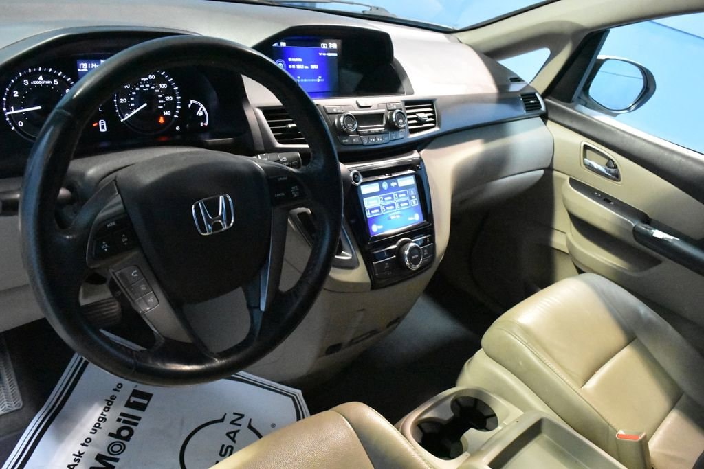 2014 Honda Odyssey EX-L VEHICLE SOLD AS-IS. We want you to shop confidently for your next used car at D-Patrick Nissan. This vehicleâs low price is reflective of its age, condition, and mileage and we do not warrant its mechanical or overall condition. This vehicle is provided with a free to you CarFax vehicle history report. This is an AS-IS vehicle and is not available for additional service plans. *Prices listed do not include a $250 documentation fee, applicable tax, title, tags, license, or $195 service and preparation. All pricing, vehicle information, and features (such as accessories and color) are believed to be accurate, but we do not warrant or guarantee such accuracy. The prices shown above may vary from region to region, and incentives are subject to change. Some offers listed may not be available to all customers. All online sale commitments are subject to confirmation of continued availability of vehicle. Once availability is confirmed, online sale agreement becomes binding upon the parties. If any information found on the website is thought to be erroneous, please verify information with a customer service representative. See dealer for full details. 17 x 7 Alloy Wheels, 3rd row seats: split-bench, 4-Wheel Disc Brakes, 4.25 Axle Ratio, 7 Speakers, ABS brakes, Air Conditioning, Alloy wheels, AM/FM radio: XM, Anti-whiplash front head restraints, Auto-dimming Rear-View mirror, Automatic temperature control, Brake assist, Bumpers: body-color, CD player, Delay-off headlights, Driver door bin, Driver vanity mirror, Driver's Seat Mounted Armrest, Dual front impact airbags, Dual front side impact airbags, Electronic Stability Control, Exterior Parking Camera Rear, Four wheel independent suspension, Front anti-roll bar, Front Bucket Seats, Front dual zone A/C, Front reading lights, Fully automatic headlights, Garage door transmitter: HomeLink, Heated door mirrors, Heated Front Bucket Seats, Heated front seats, Illuminated entry, Leather Seat Trim, Leather Shift Knob, Leather steering wheel, Low tire pressure warning, Occupant sensing airbag, Outside temperature display, Overhead airbag, Overhead console, Panic alarm, Passenger door bin, Passenger seat mounted armrest, Passenger vanity mirror, Power door mirrors, Power driver seat, Power Liftgate, Power moonroof, Power passenger seat, Power steering, Power windows, Radio data system, Rear air conditioning, Rear reading lights, Rear seat center armrest, Rear window defroster, Rear window wiper, Reclining 3rd row seat, Remote keyless entry, Security system, Speed control, Speed-sensing steering, Speed-Sensitive Wipers, Split folding rear seat, Spoiler, Steering wheel mounted audio controls, Tachometer, Telescoping steering wheel, Tilt steering wheel, Traction control, Trip computer, Variably intermittent wipers. 4D Passenger Van EX-L 6-Speed Automatic 3.5L V6 SOHC i-VTEC 24V FWD CALL TODAY 812-473-6500 and shop online at www.dpatricknissan.com.